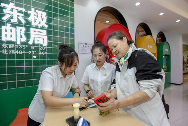 从刚刚接触邮政产品的小朋友,到慕名而来选购特色纪念品的大学生,再到对饱含地域风情的各种纪念戳爱不释手的老邮迷,采访期间,来主题邮局的游客络绎不绝,大家亲身感受着来自祖国最东端的独特浪漫。