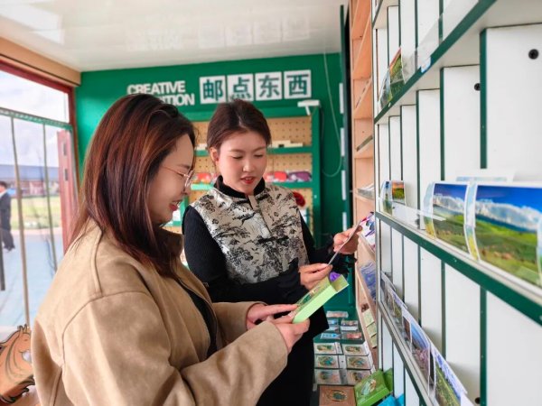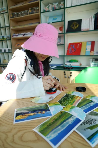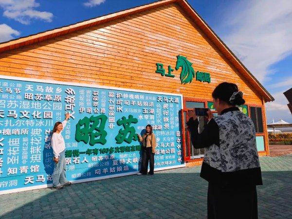 广东省梅州市游客李女士说:“‘马上’邮局很有特色,还有一个网红墙可以拍照,随意凹造型。平时我也会去景点购买明信片、冰箱贴当做伴手礼,我要把我手里的明信片邮寄给朋友。”