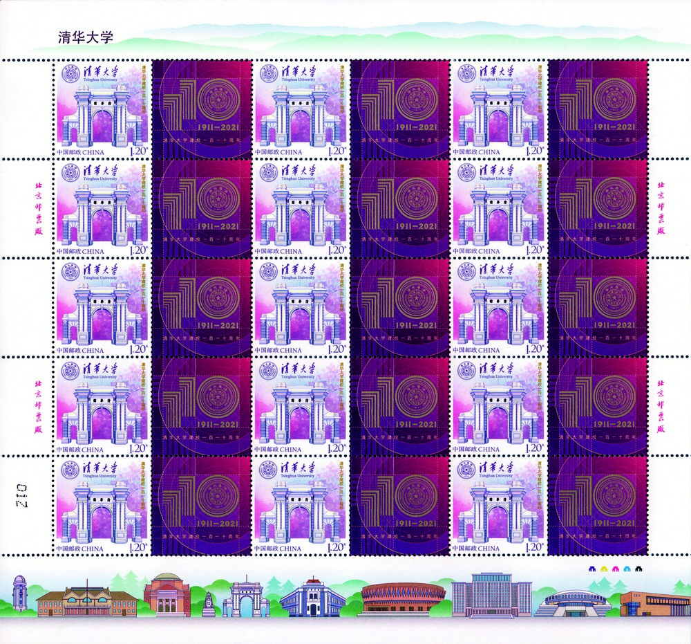 中国邮政定于2021年4月24日发行《清华大学》个性化服务专用邮票1套1枚。详情如下: