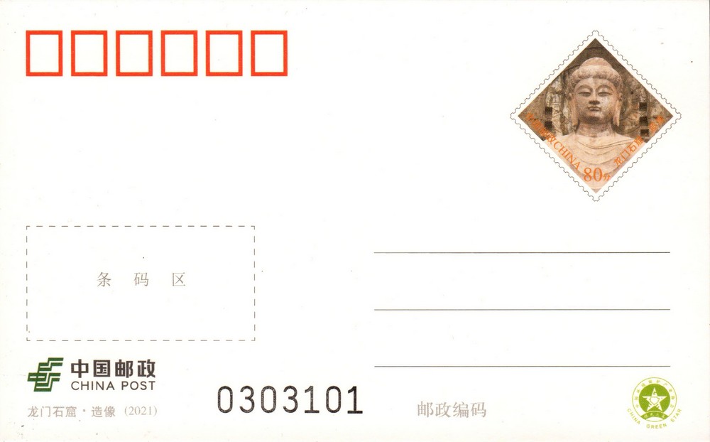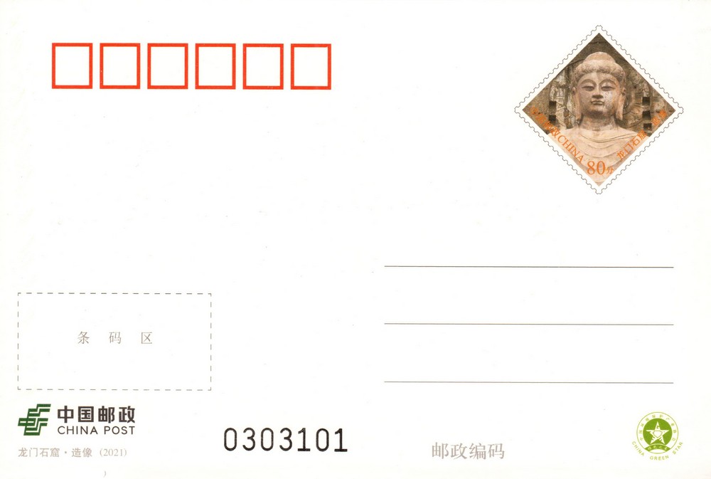 中国邮政定于2021年5月26日发行《龙门石窟·造像》普通邮资明信片2枚。详情如下: