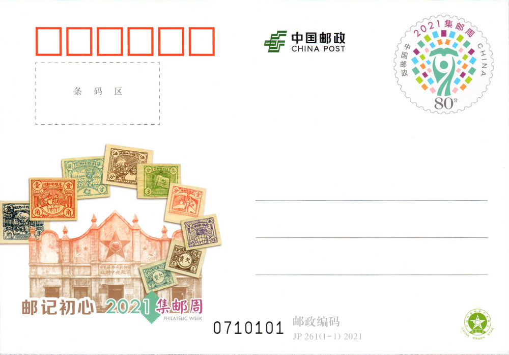中国邮政定于2021年9月19日发行《2021集邮周》纪念邮资明信片1套1枚。详情如下: