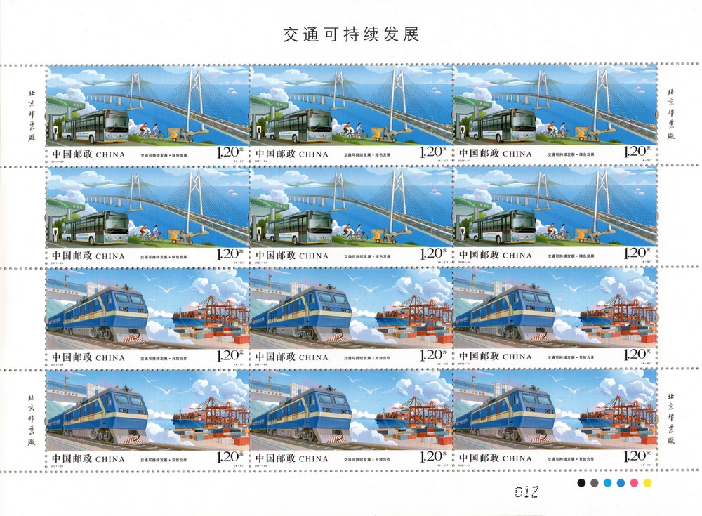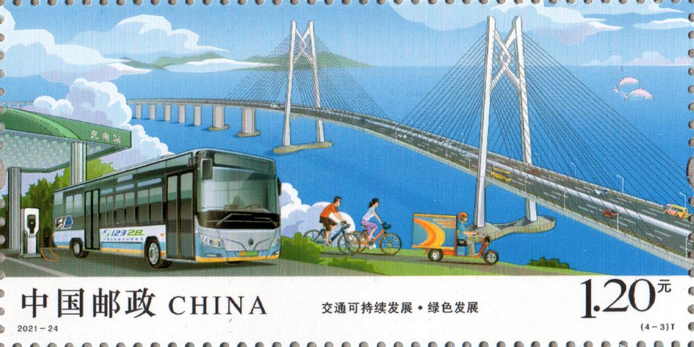 中国邮政定于2021年10月15日发行《交通可持续发展》特种邮票一套4枚,全套邮票面值4.80元,邮票计划发行数量为650万套。